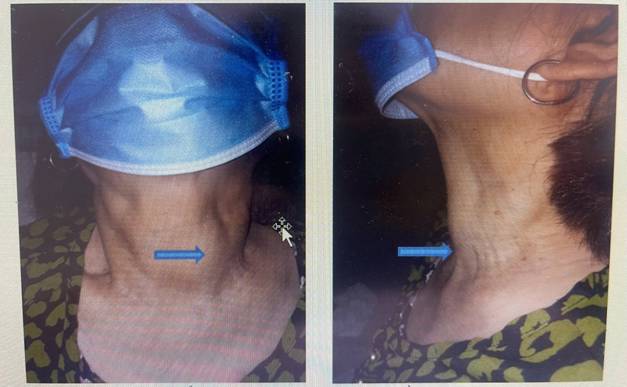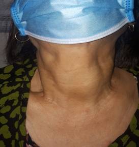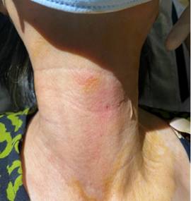 (Ảnh: Bệnh nhân sau khi tiêm cồn điều trị nang giáp trái)