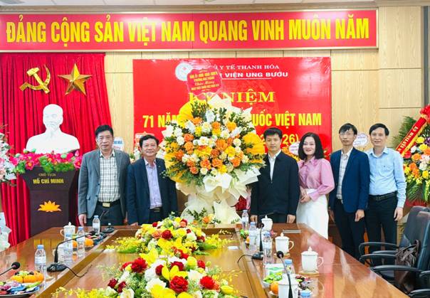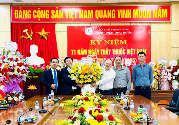 Cũng nhân dịp này, bệnh viện Ung bướu tỉnh Thanh Hóa đã đón các cơ quan, đơn vị đến thăm, gửi những lẵng hoa tươi thắm và những lời chúc tốt đẹp đến Y, bác sĩ đang công tác tại bệnh viện. Thay mặt Ban lãnh đạo bệnh viện Ung bướu tỉnh Thanh Hóa, ThS.BSCKII Trần Văn Thiết - Bí Thư Đảng ủy, Giám đốc bệnh viện gửi lời cảm ơn sâu sắc tới các cơ quan, đơn vị đã dành tình cảm khi đến chúc mừng bệnh viện nhân ngày truyền thống của ngành y, đây cũng là nguồn cổ vũ, động viên, quan tâm rất lớn đến toàn thể viên chức, người lao động của bệnh viện. Trong năm qua, đơn vị đã hoàn tốt công tác chăm sóc sức khỏe cho nhân dân trên địa bàn, tuy nhiên vẫn còn gặp một số khó khăn. Trong năm 2026, tiếp thu những ý kiến chỉ đạo của Lãnh đạo và tình cảm của các Ban ngành, đoàn thể và các đơn vị, bệnh viện sẽ xây dựng mối đoàn kết, triển khai đồng bộ các nhiệm vụ, nâng cao trình độ chuyên môn của đội ngũ cán bộ y, bác sĩ trong đơn vị để làm tốt công tác chăm sóc sức khỏe nhân dân trên địa bàn Tỉnh.