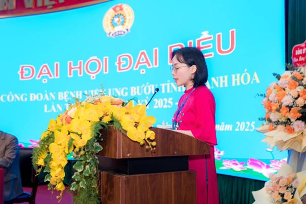 Phát biểu chỉ đạo tại Đại hội, đồng chí Lê Chung Văn - UVBTV Công đoàn Liên đoàn Lao động tỉnh Thanh Hoá, Phó trưởng ban công tác Công đoàn đã ghi nhận, biểu dương những kết quả nổi bật mà Công đoàn Bệnh viện đạt được trong nhiệm kỳ qua, đồng thời cũng nhấn mạnh, trong thời gian tới CĐCS Bệnh viện cần tiếp tục thực hiện tốt vai trò đại diện, chăm lo và bảo vệ quyền, lợi ích hợp pháp chính đáng cho VCNLĐ. Tích cực học tập nâng cao trình độ chuyên môn, kịp thời khen thưởng, biểu dương các gương sáng. Đẩy mạnh phong trào thi đua, thi đua phải gắn với thực hiện nhiệm vụ chuyên môn, từ đó nâng cao chất lượng hiệu quả hoạt động của CĐCS, góp phần hoàn thành tốt nhiệm vụ chính trị của đơn vị và ngành Y tế tỉnh Thanh Hóa.