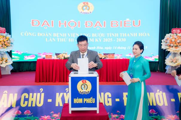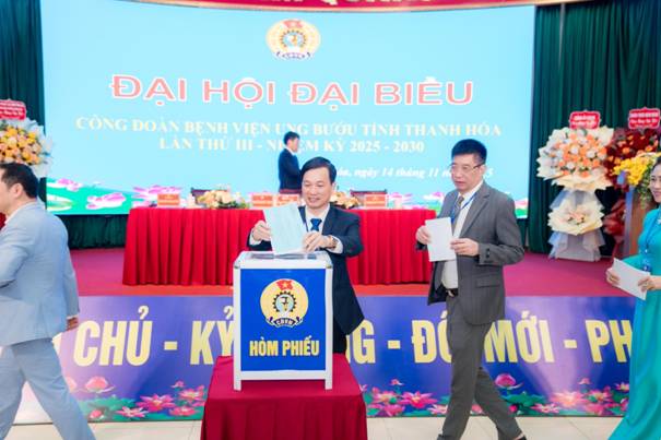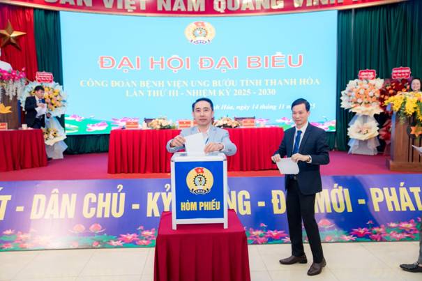 Đại hội đã tiến hành bầu Ban Chấp hành Công đoàn Bệnh viện Ung bướu tỉnh Thanh Hóa nhiệm kỳ 2025-2030 gồm 9 đồng chí tiêu biểu về năng lực, phẩm chất, uy tín; bầu Đoàn đại biểu đi dự Đại hội Công đoàn tỉnh Thanh Hóa lần thứ XXI, nhiệm kỳ 2025-2030 gồm 02 đại biểu chính thức và 01 đại biểu dự khuyết. Ban Chấp hành khóa mới ra mắt, nhận nhiệm vụ và thể hiện quyết tâm tiếp nối truyền thống vẻ vang của đơn vị, không ngừng đổi mới, sáng tạo, đoàn kết, góp phần xây dựng tổ chức Công đoàn và Bệnh viện ngày càng phát triển bền vững.