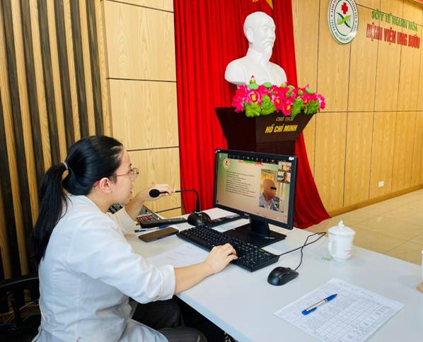 Ảnh: Các bác sĩ xin thêm ý kiến từ chuyên gia tại buổi hội chẩn khám, chữa bệnh từ xa