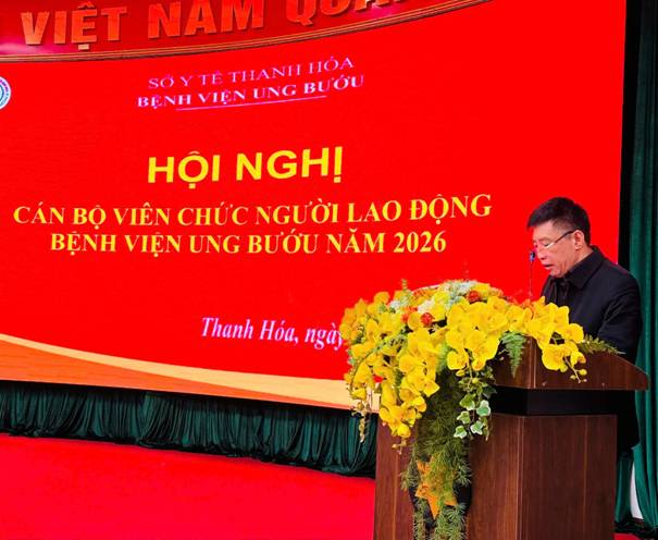 Hội nghị CBVC-NLĐ triển khai nhiệm vụ Bệnh viện năm 2026 đã diễn ra thành công tốt đẹp với tinh thần làm việc khẩn trương, trách nhiệm, hiệu quả. Dưới sự chỉ đạo của ngành y tế Thanh Hóa, Đảng ủy và Ban Giám đốc cùng toàn thể cán bộ viên chức, người lao động sẽ cùng chung sức đồng lòng, vượt qua mọi khó khăn để hoàn thành thắng lợi nhiệm vụ mục tiêu đề ra trong năm 2026, xây dựng Bệnh viện Ung bướu tỉnh Thanh Hóa ngày càng phát triển vững mạnh trong sự nghiệp chăm sóc và bảo vệ sức khoẻ nhân dân, xứng đáng với niềm tin của ngành, của tỉnh Thanh Hóa.