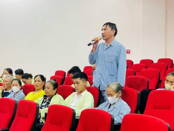 Xuyên suốt buổi họp, các ý kiến thảo luận của người bệnh, người nhà người bệnh diễn ra sôi nổi về các vấn đề liên quan đến cơ sở vật chất, thái độ phục vụ, quy trình và các thủ tục hành chính trong khám chữa bệnh, chất lượng dịch vụ khám chữa bệnh tại Bệnh viện,...Bên cạnh đó, có nhiều bệnh nhân, người nhà bệnh nhân bày tỏ lời cảm ơn và rất xúc động trước tình cảm, sự chăm sóc chu đáo, tận tình của đội ngũ y bác sĩ trong thời gian điều trị tại Bệnh viện. Phần lớn là các ý kiến ghi nhận, khen ngợi về giao tiếp ứng xử, tinh thần phục vụ, chất lượng chuyên môn tốt trong điều trị và chăm sóc của nhân viên y tế tại bệnh viện.